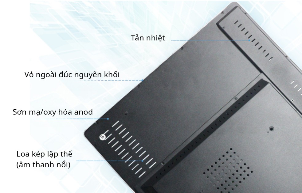 Màn hình được tích hợp loa trong và Wi‑Fi, đủ dùng cho các video giới thiệu, thông báo hoặc nội dung có âm thanh cơ bản. Với các nhu cầu phổ thông, người dùng không cần lắp thêm thiết bị âm thanh bên ngoài, giúp tiết kiệm chi phí và không gian.