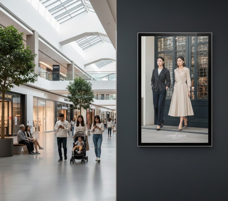 Trong thực tế, điều này giúp nội dung quảng cáo, thông báo hoặc video không bị nhạt màu, không bị lóa trắng như khi dùng các màn hình dân dụng thông thường. Người xem có thể dễ dàng đọc thông tin và theo dõi nội dung mà không bị mỏi mắt.